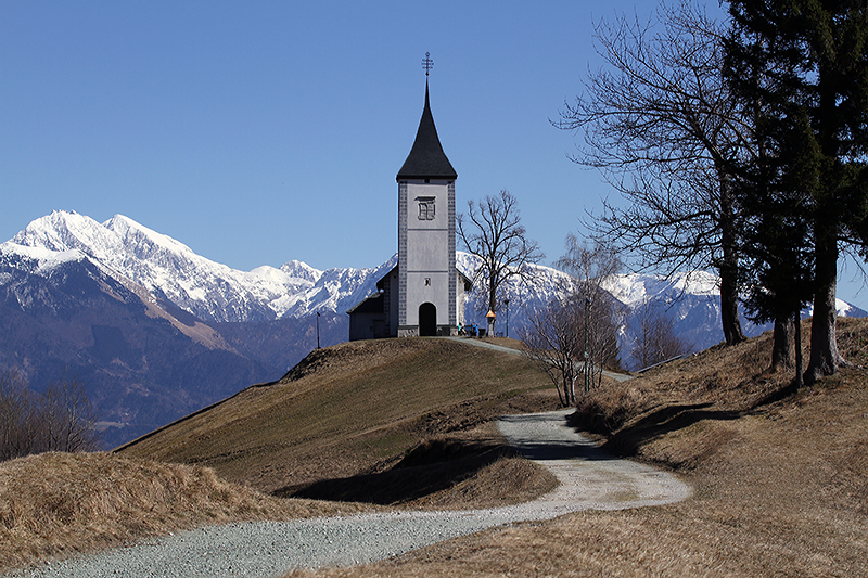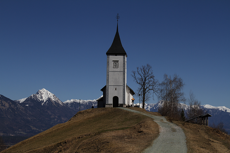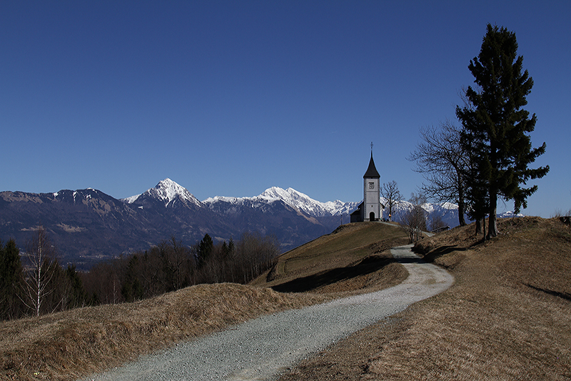 Greva midva na Gorenjsko nekaj iskat, sediva na kavici in se pogovarjava s človekom, ko moj pogled nenadoma uzre hrib. In na njem cerkev. Pa ob njem drevo. Več dreves. Resnično nič posebnega v Sloveniji, kjer ima vsak hrib svojo cerkvico. Ko v meni naenkrat nastane nemir in kar sredi pogovora butnem: "A je to Jamnik?" Jaaaaaaa. Evo, čisto po butastem sem danes prišla tja gor kjer se ti orosi oko in ti srece reče:"Madona imamo lepo deželo."