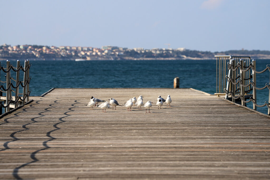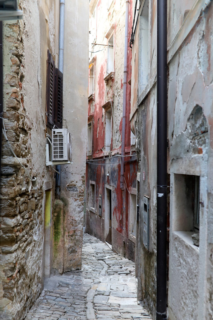 Priporočali so mi odklop in sem ga šla iskat. Nikoli si nisem mislila, da bo tako poln presenečenj. Burja je noro pihala, a sijalo je sonce in to je bilo najpomembneje. Človek že najde zavetrno stran, čeprav je nisem ravno iskala – so mi motivi bili pomembnejši. Tokrat sem iskala drugačne in za takšne mora človek izbrati drugačne, nove poti. Zato Piran z malo drugačnih zornih kotov. Portorož mi ni nikoli bil fotogeničen, razen seveda dobrega starega Palace hotela in kakšnega pomola.