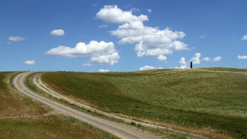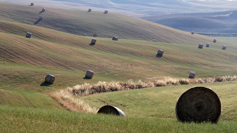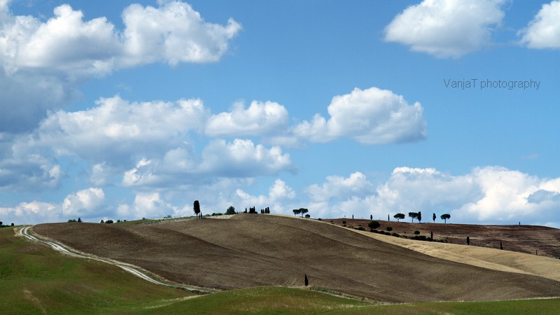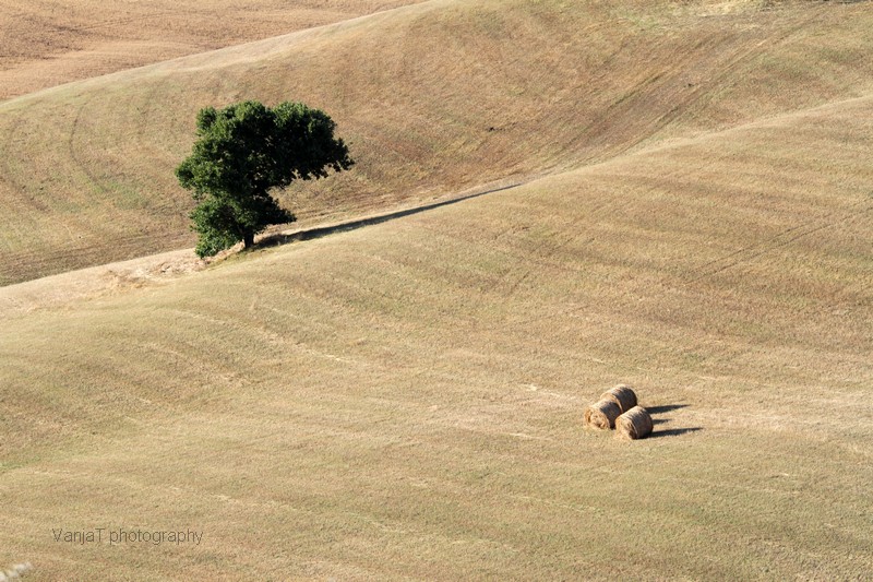 No, pa začnimo. Najprej moram povedati, da me je najbolj presenetila veličina. Planjave žitnih polj skozi katere se vijejo ceste, vmes pa osamela drevesa, pa seveda ciprese in na hribčkih posejane hiše iz kamna. Fotografije moraš nekaj časa gledati, da se zaveš kako širne so pravzaprav te planjave.