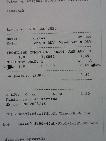 Ko prideš in rečeš: "En Frontline" pa ti zakasirajo storitev prodaje = zaračunajo svetovanje. Kakšno svetovanje!?