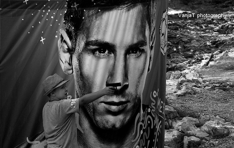 Najraje bi fotko poslala njegovi mami. Ne – najraje bi jo napopala na vse jumbo panoje, kjerkoli že stojijo!!! Mulo zavaljeni naj bi se raje spravil športat, ne pa da mu hodi po glavi streljanje – in to ne namišljeno. Plastične kroglice so nevarno frčale vse naokoli, medtem, ko so ta stari v miru pili pivo. Slaba izbira, mama!