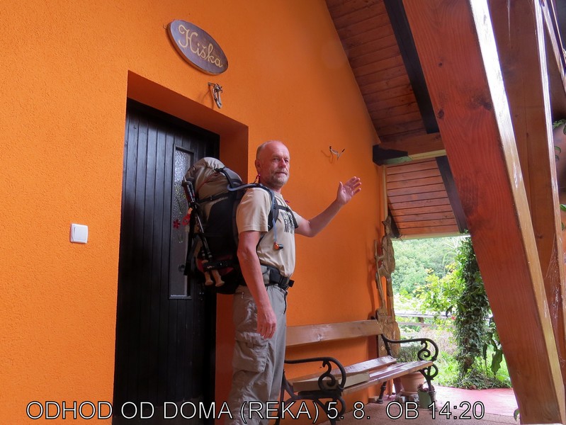 Od doma iz Reke nad Laškim sem odšel v torek, 5. 8. 2014, ob 14.20. Že ob prvem fotografiranju se je ulil dež za srečo. Do Laškega sem zato preko Gabrnega odšel kar po cesti in ne preko travnikov, saj nisem hotel že prvi dan zmočiti čevljev. Iz Laškega do Šmohorja me je ob močnem deževju pospremila Olga, nato pa sem sam nadaljeval pot do Mrzlice, kjer sem prvič prenočil.